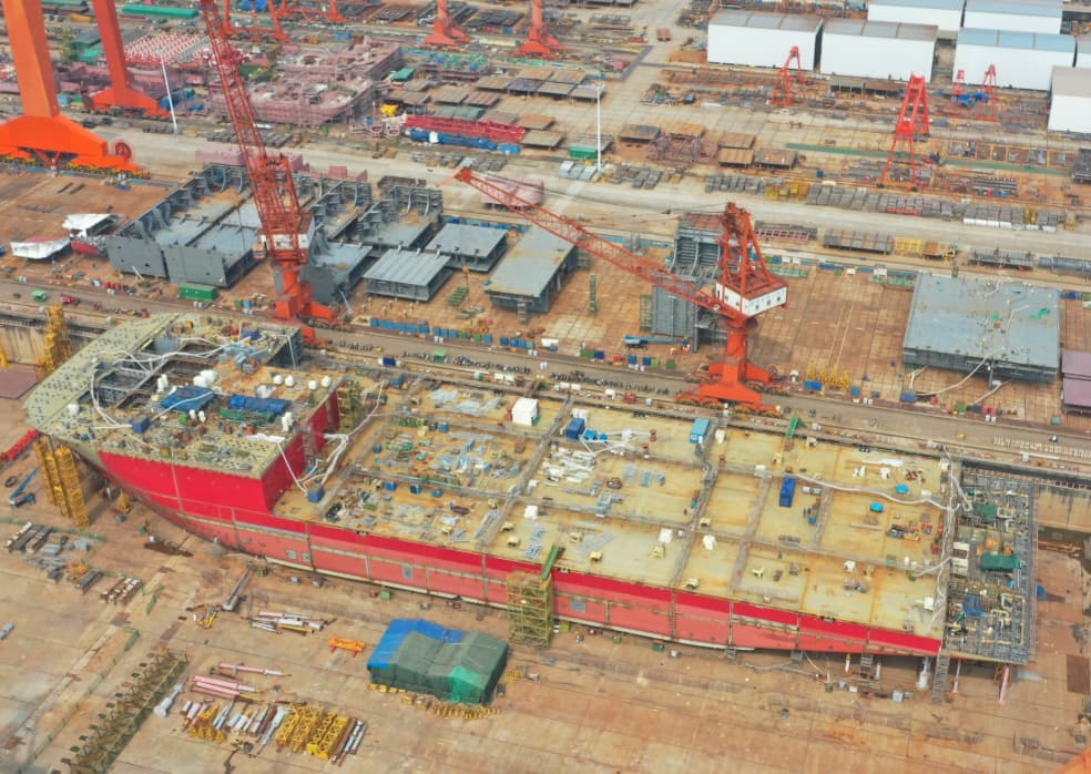 建造中的Alfa Lift风电运输安装船(图片来源:OHT)